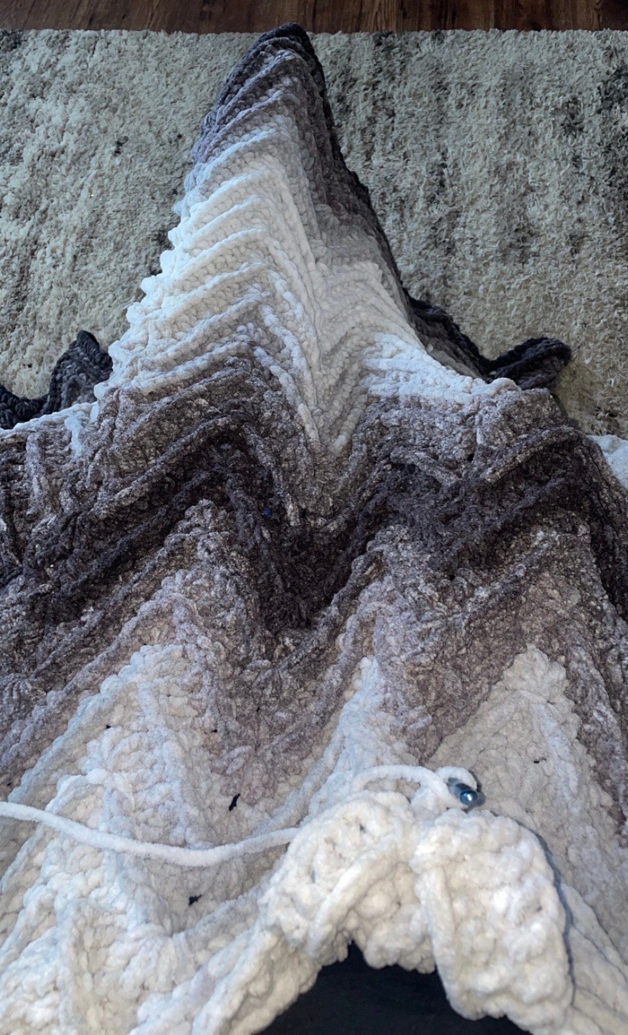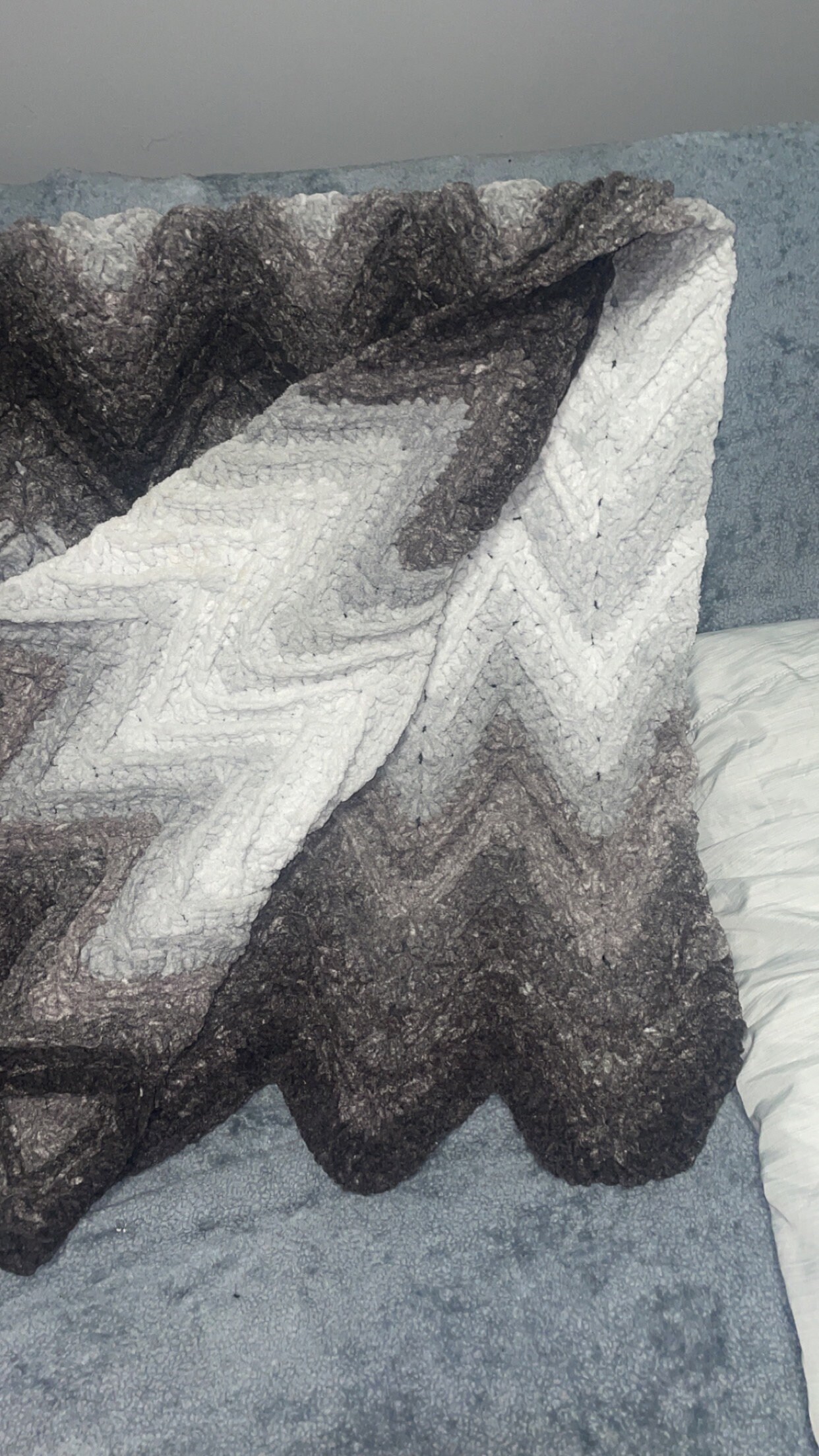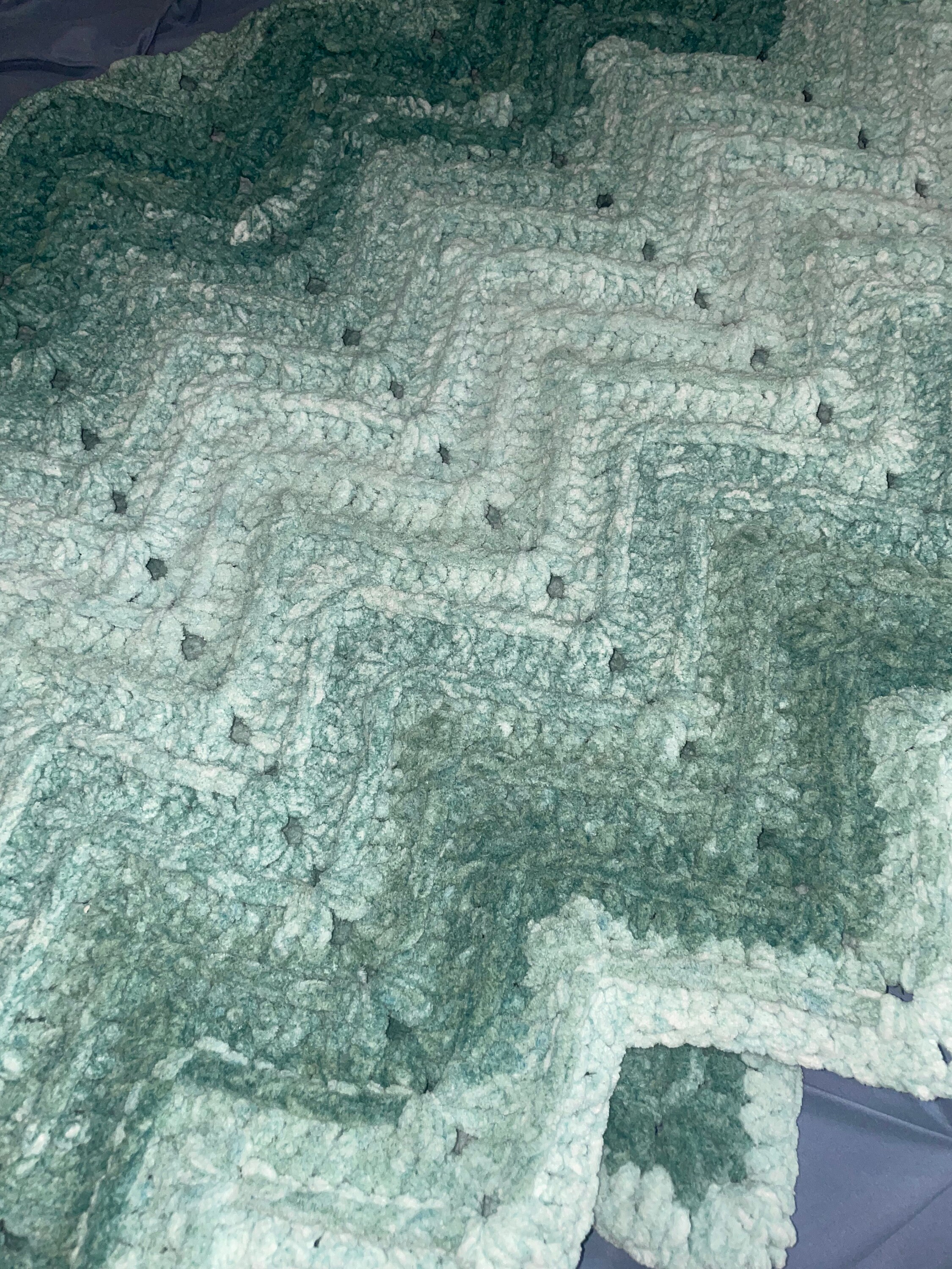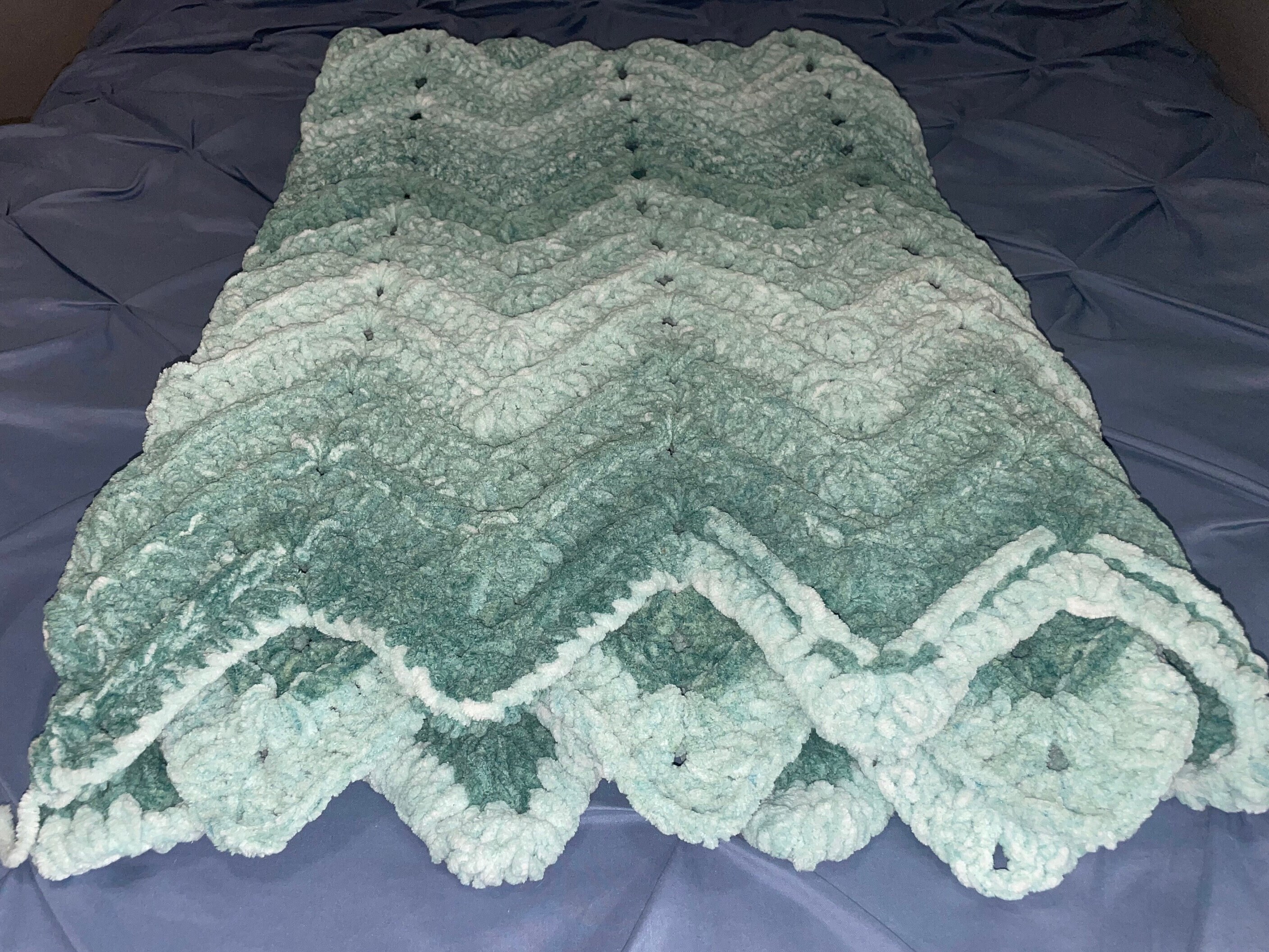 The ribbed ripple blanket is made with chunky weight yarn for a soft, warm and cozy feel. Perfect for wrapping up with on the couch, or in bed!