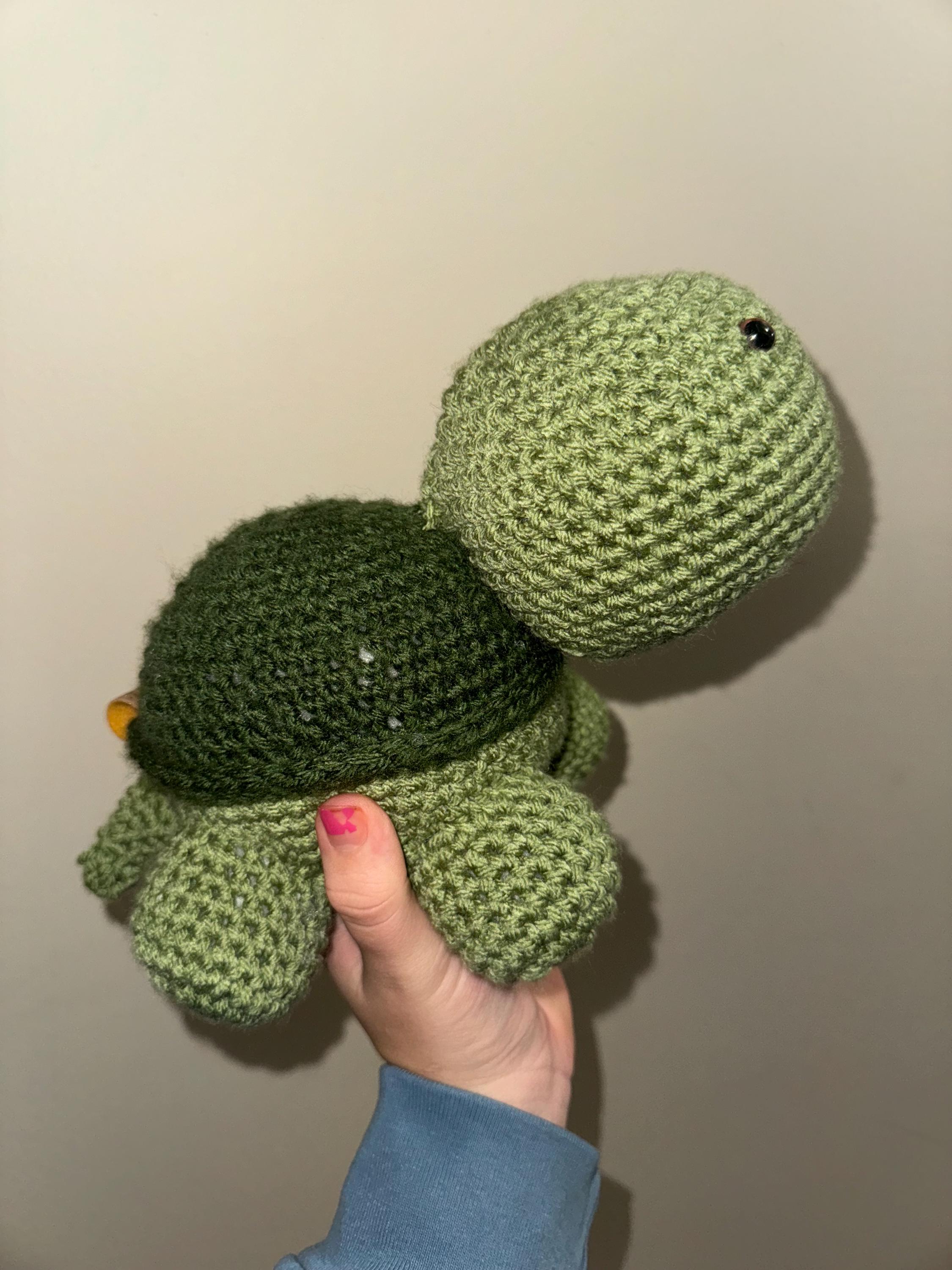 Turtle stuffed animal! Made with red heart yarns and polyester stuffing! Perfect for the little ones!