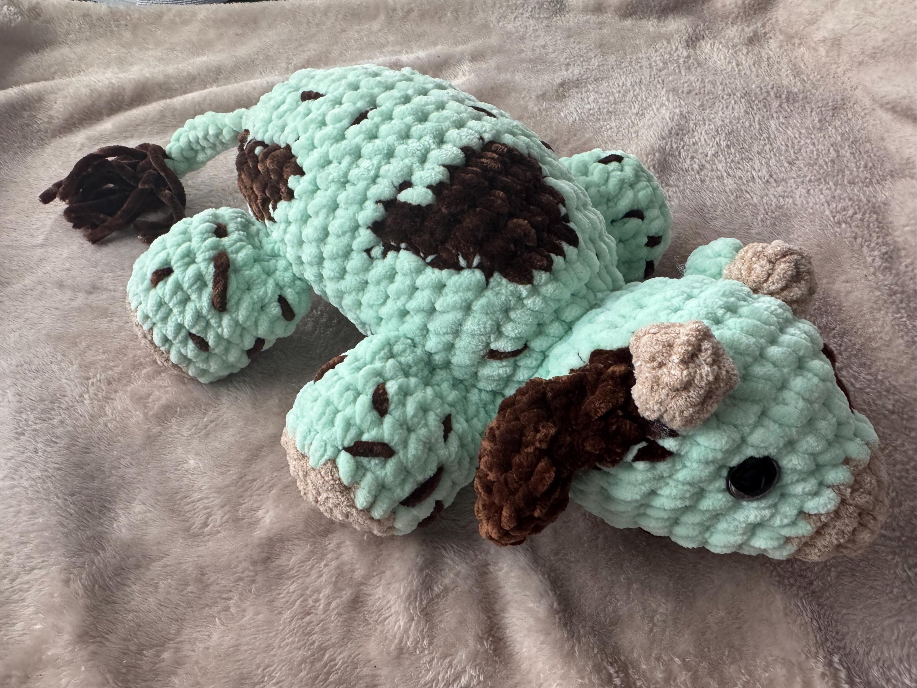 Crochet spotted sleepy cow -