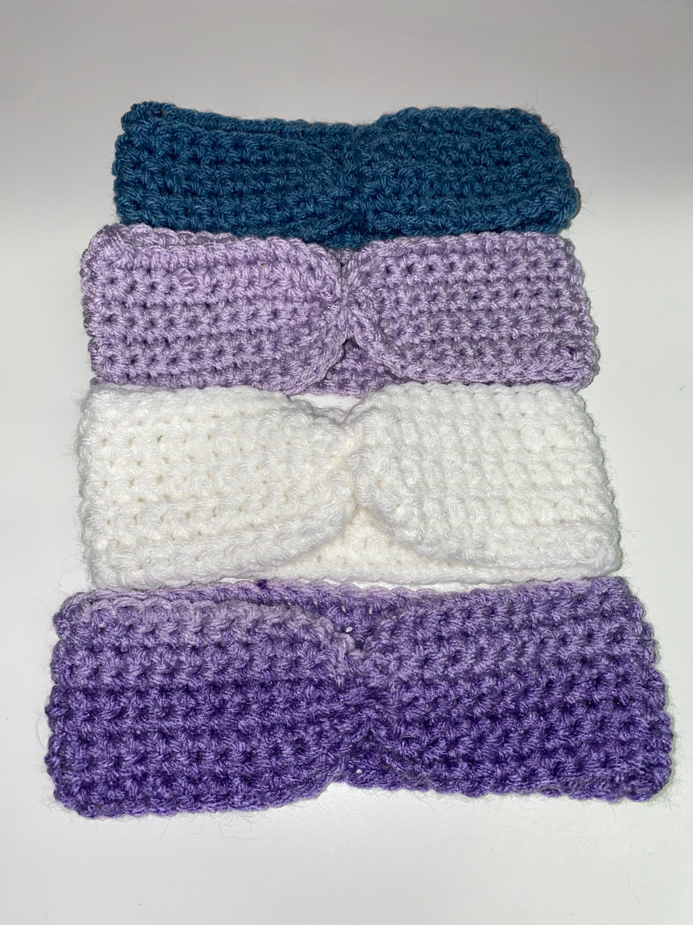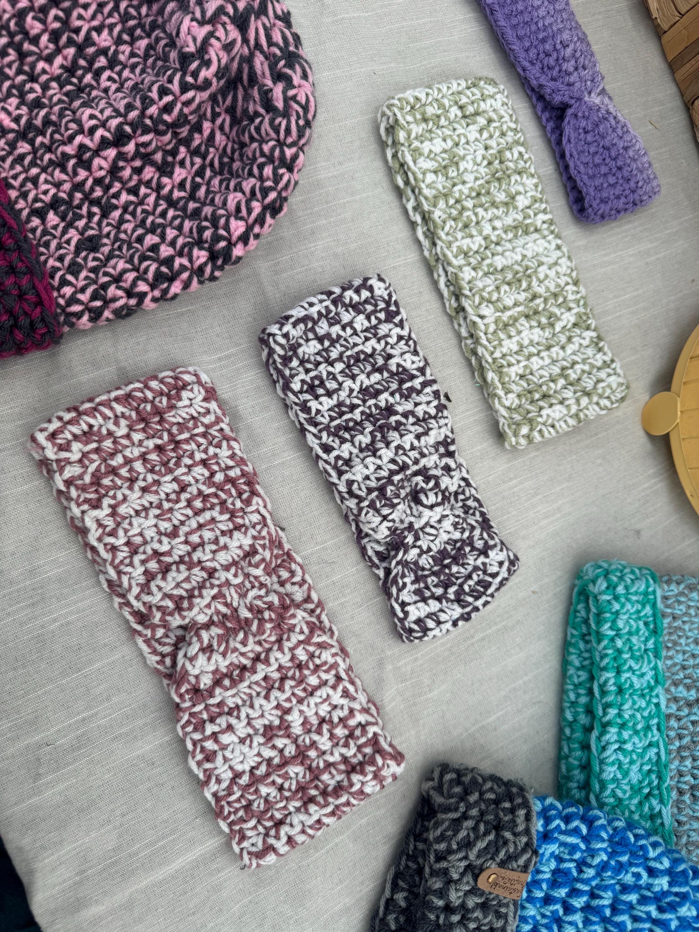 Baby headbands for babies 3 months and up! Yarn Color and thickness customizable. Often Made with acrylic yarns which may irritate those with sensitive skin. Machine washable, air dry only!